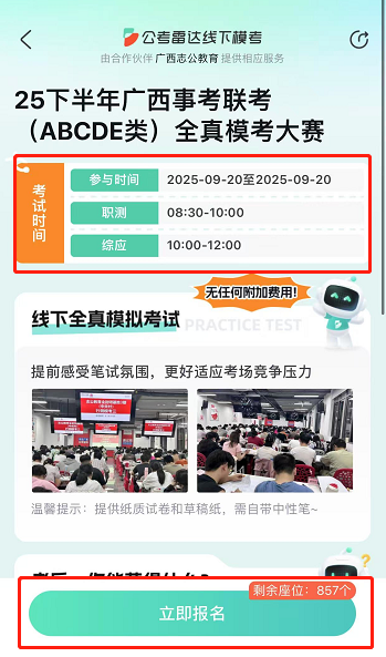 3??模考參與獎(jiǎng):凡報(bào)名線(xiàn)下???,考完即可獲贈(zèng)《公考智慧領(lǐng)航》7 本(現(xiàn)場(chǎng)領(lǐng)?。┖褪驴季敷w驗(yàn)網(wǎng)課等學(xué)習(xí)大禮包。