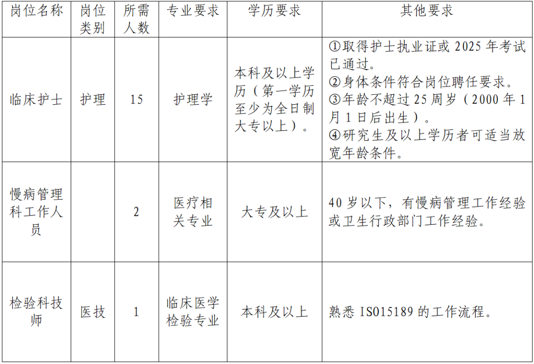 (一)報(bào)名。應(yīng)聘者需在2025年9月21日前將個(gè)人電子簡歷及應(yīng)聘所需佐證材料,包括但不限于畢業(yè)證(第一學(xué)歷和最高學(xué)歷)、學(xué)位證、執(zhí)業(yè)證(考試成績)、職稱證、進(jìn)修結(jié)業(yè)證、專科護(hù)士培訓(xùn)合格證、執(zhí)業(yè)資格考試成績單等打包發(fā)送至rsk7836669@163.com郵箱,報(bào)名材料以“姓名+專業(yè)+衛(wèi)技招聘”名字命名。