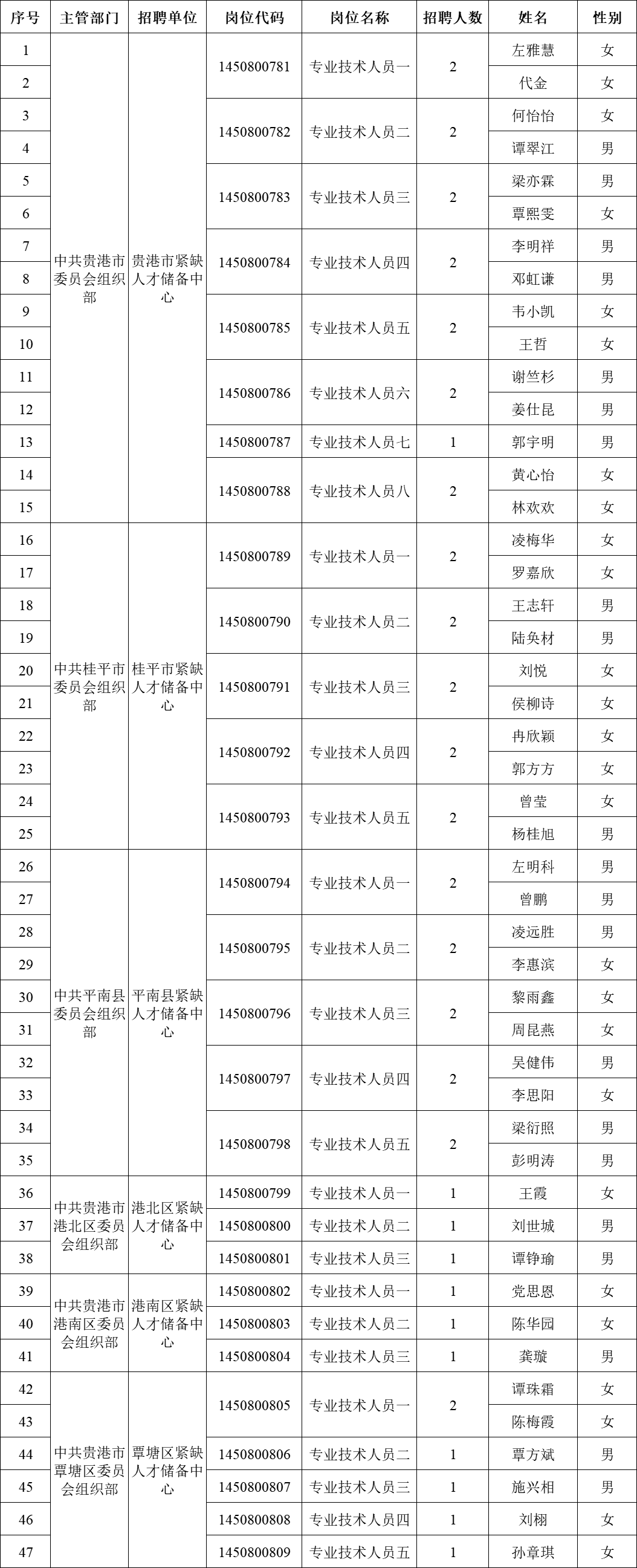 原文標(biāo)題:2025年貴港市引進(jìn)重點(diǎn)領(lǐng)域重點(diǎn)產(chǎn)業(yè)急需緊缺(高層次)人才進(jìn)入考察人員名單公告