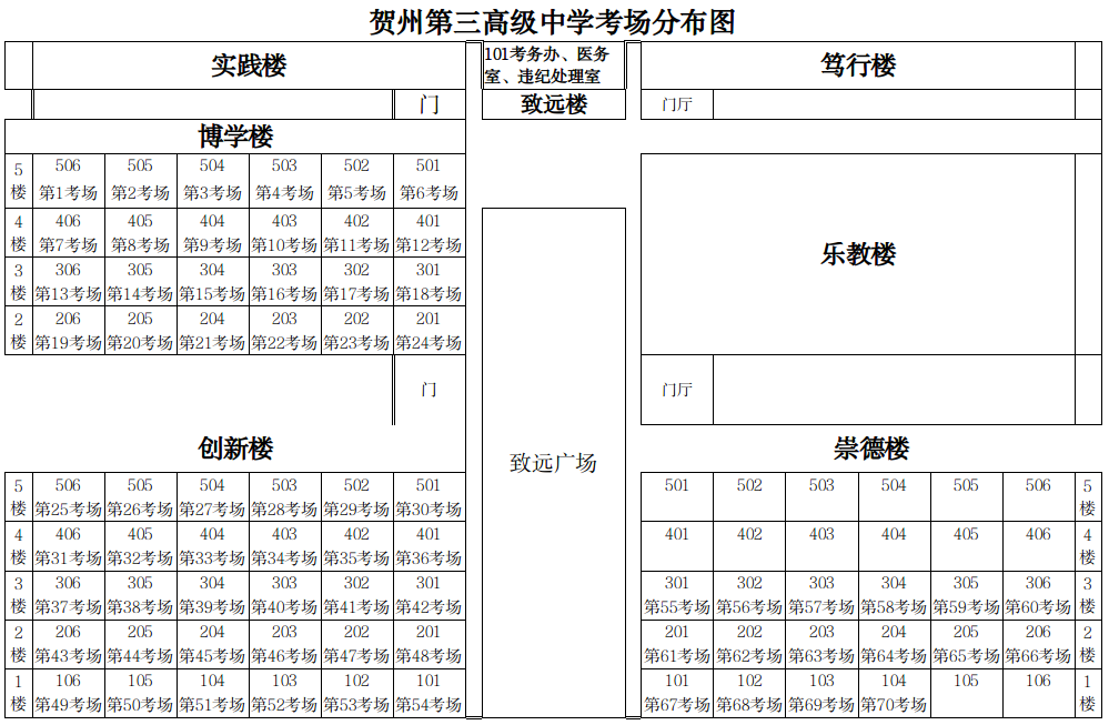 考生提前了解準考證上指定的考試地點,熟悉考點學校地址、交通路線,考試當天預留足夠時間,避免因堵車、走錯考點或遲到等原因影響參加考試。請關注考試當天天氣,注意做好防雨防寒防滑等個人防護準備。本次考試賀州市考區(qū)共設5個考點,分別為: