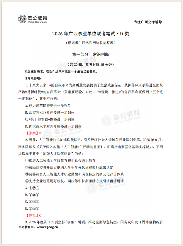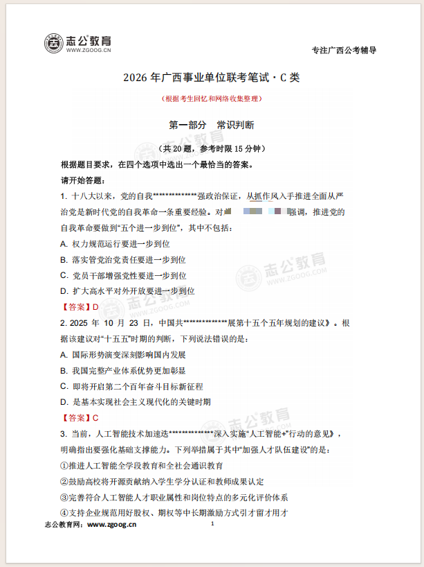 26廣西事筆ABCDE類科目均已筆試結束